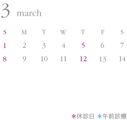 3/21(土)の診療は、院長不在のため女性医師が担当いたします
